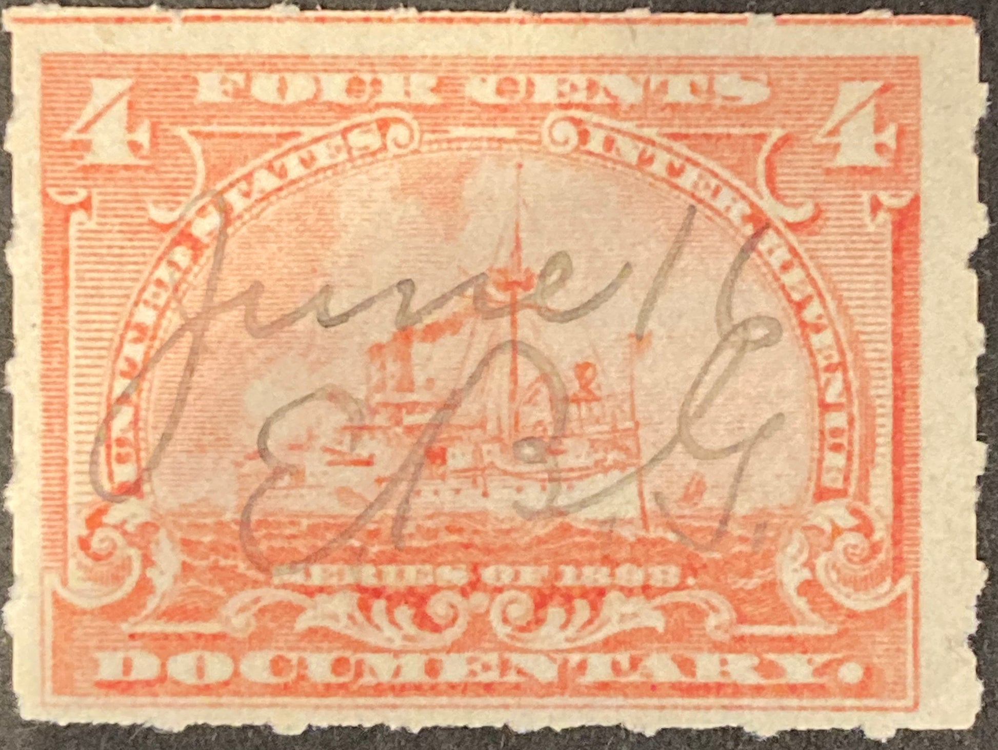 1898 4 cents Red USA Documentary Stamp Inter Revenue