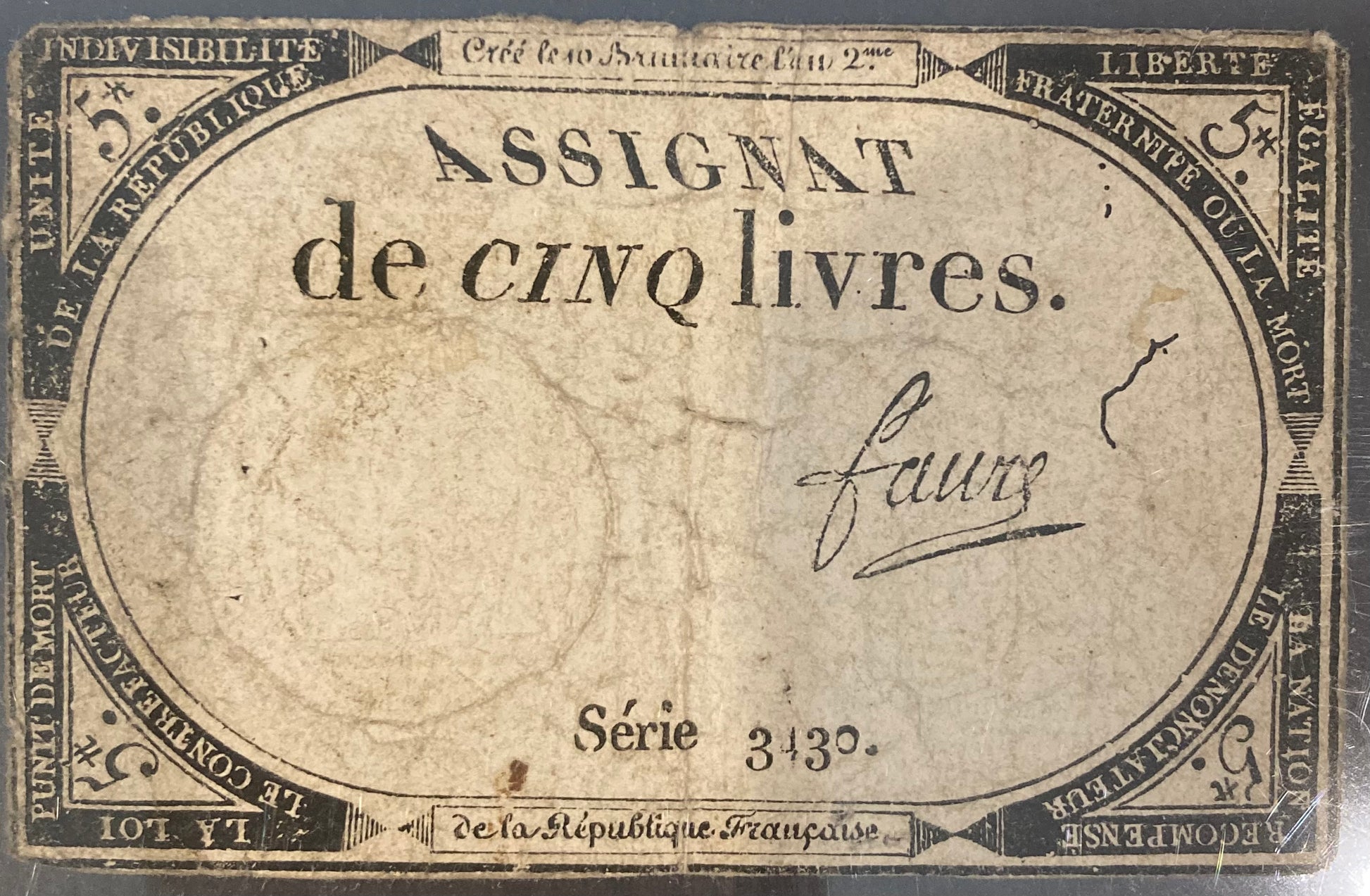 18th/19th Century French Assignat - 5 livres