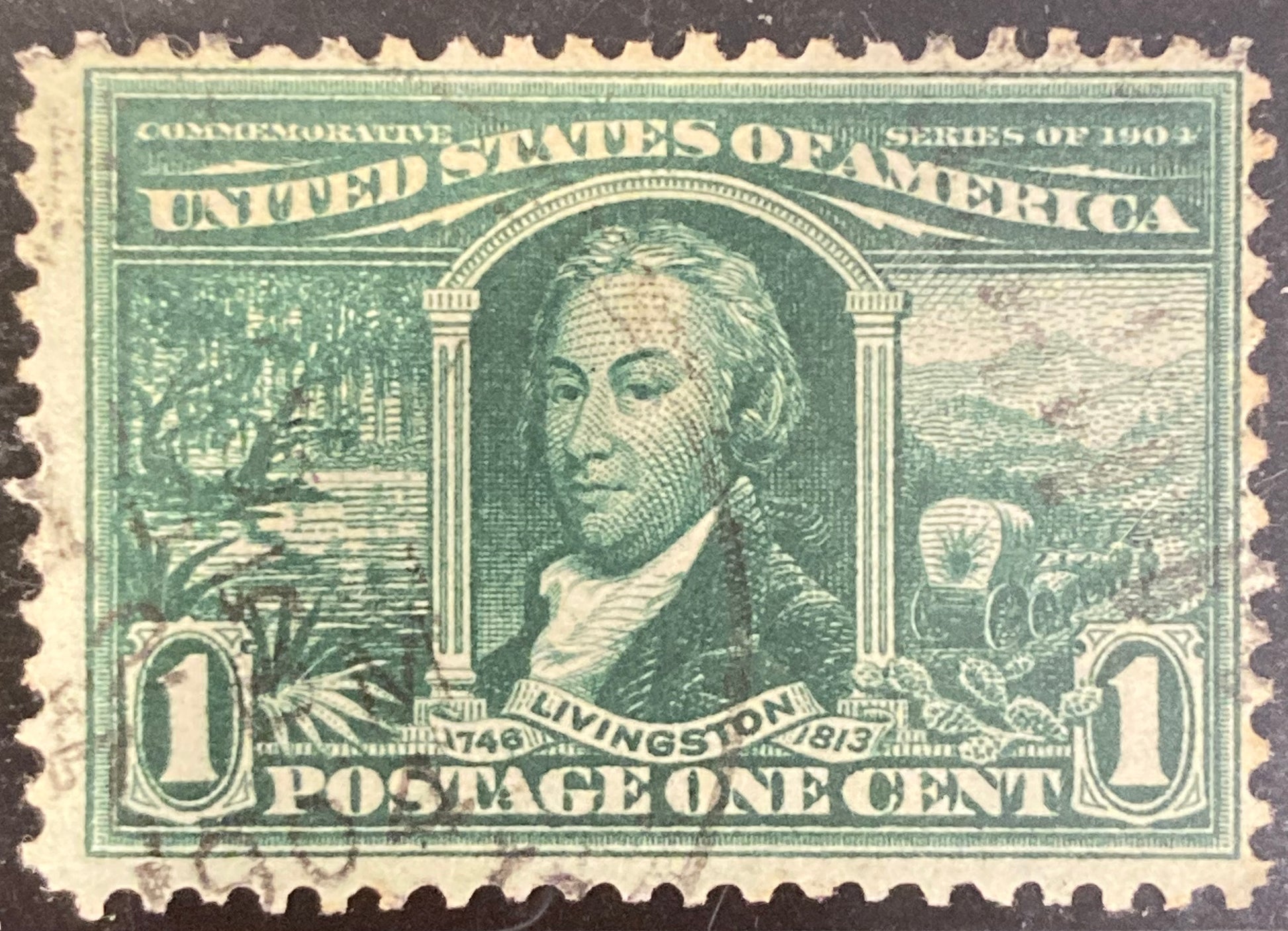 The 1904 Robert Livingston USA Scott #323 Green Stamp is a commemorative stamp that was issued by the United States Postal Service to celebrate the centennial anniversary of the Louisiana Purchase. It features a portrait of Robert R. Livingston, the American statesman who negotiated the purchase of the Louisiana Territory from France in 1803.