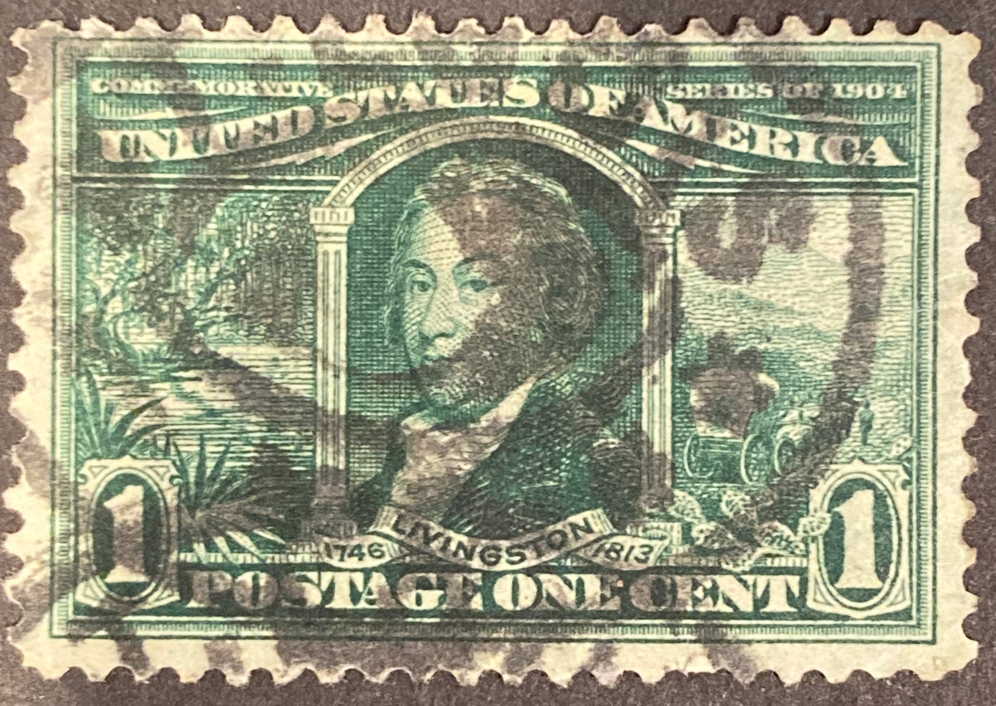 The 1904 Robert Livingston USA Scott #323 Green Stamp is a commemorative stamp that was issued by the United States Postal Service to celebrate the centennial anniversary of the Louisiana Purchase. It features a portrait of Robert R. Livingston, the American statesman who negotiated the purchase of the Louisiana Territory from France in 1803.