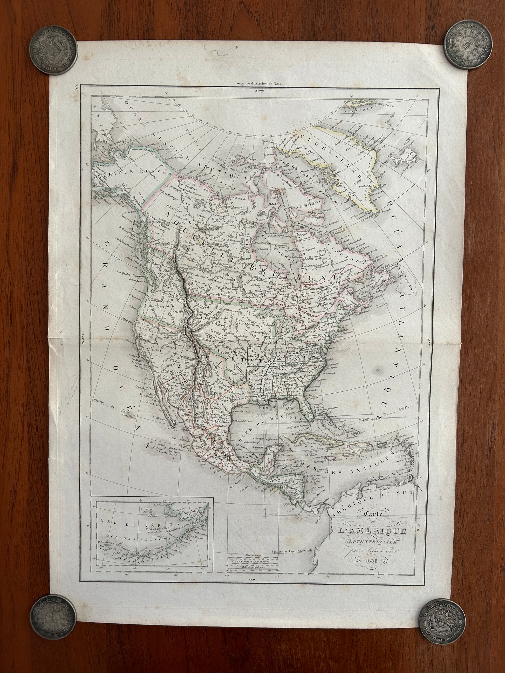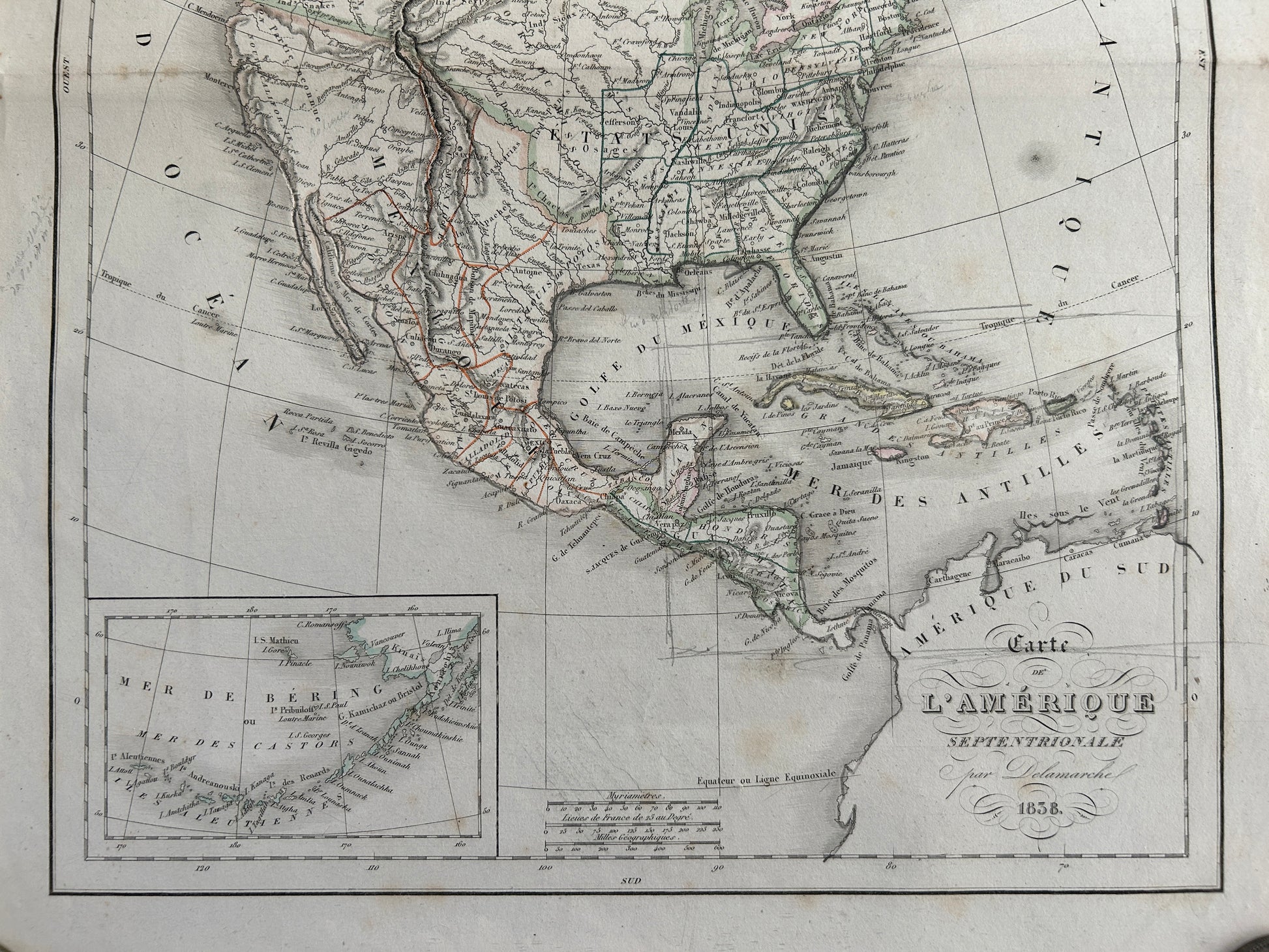 Discover the beauty of North America with the Carte de l'Amérique Septentrionale 1838. This exquisitely detailed map showcases the richness and diversity of the continent, making it a must-have for any collector or history enthusiast. With its elegant design and intricate features, it is truly a work of art that will add a touch of sophistication to any space.