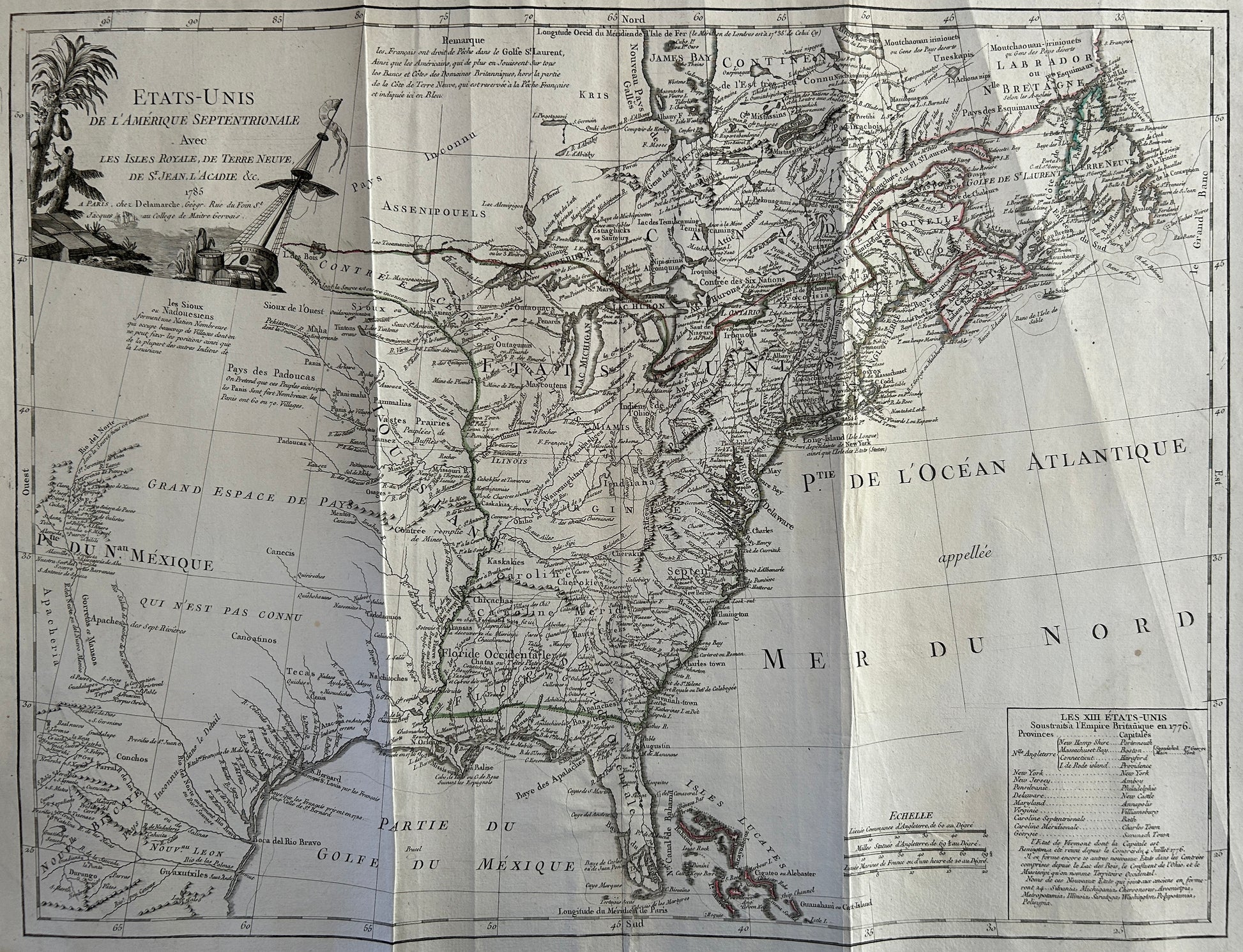 Delmarche, Charles Francois. Etats-Unis de L'Amerique Septentrionale avec les isles royale... Paris, 1785.