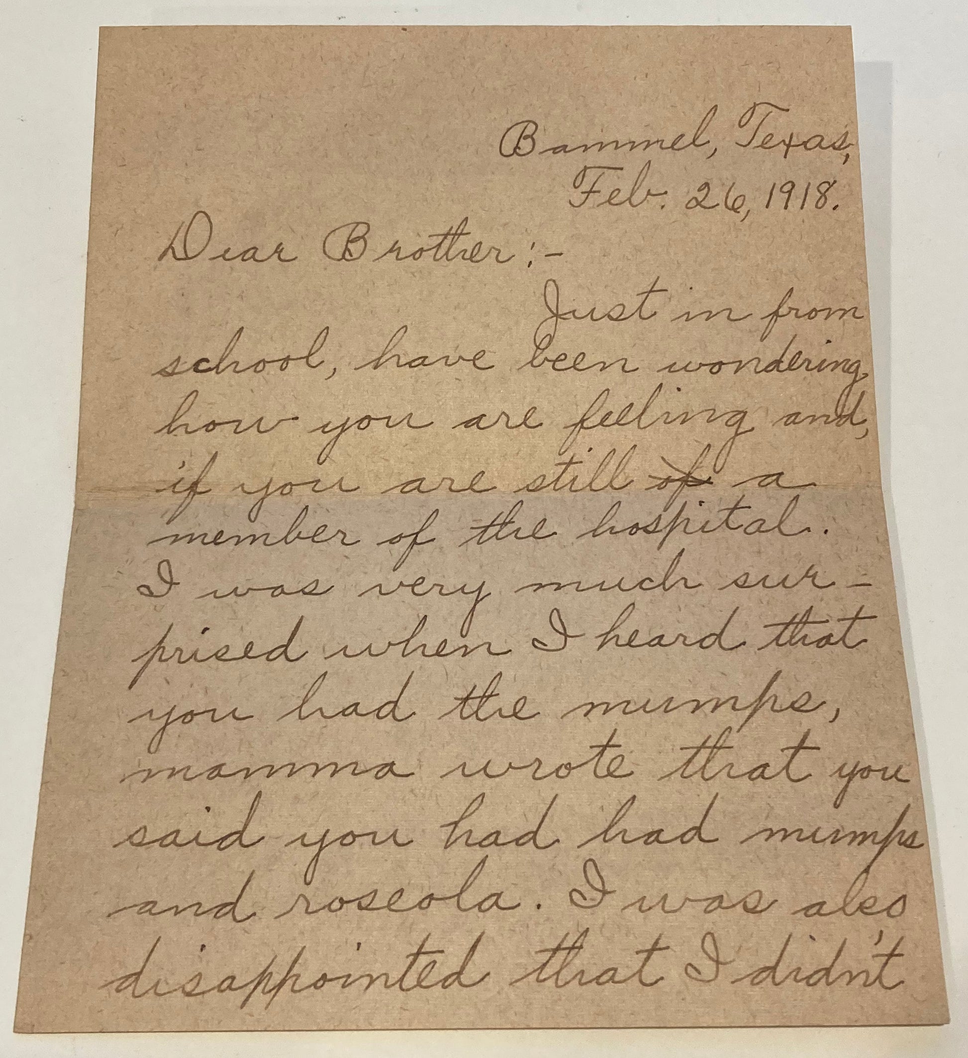 This is a beautiful letter of a wife writing to her husband at a hospital in Houston Texas.