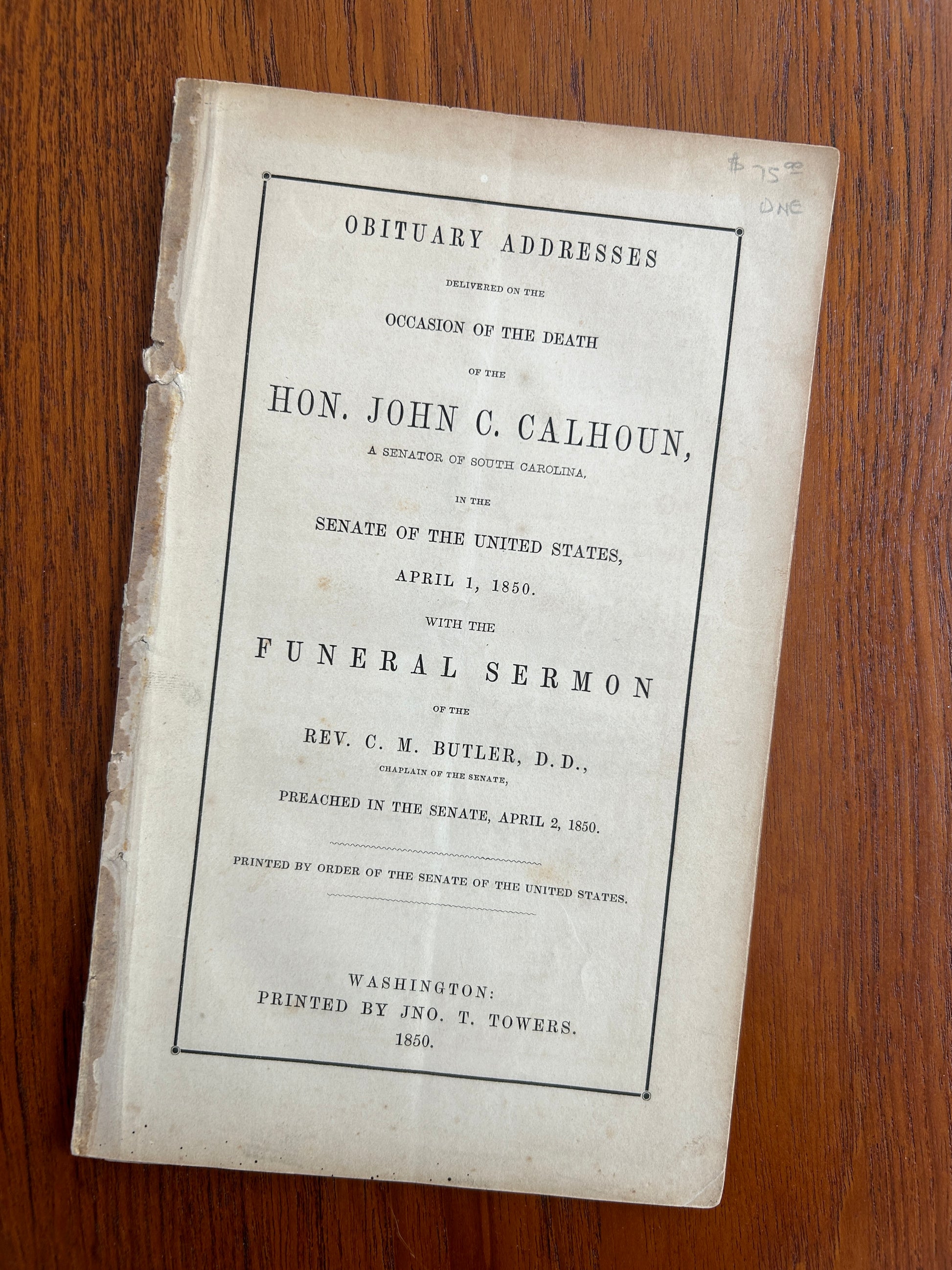Obituary Addresses for Hon. John C. Calhoun - 1850