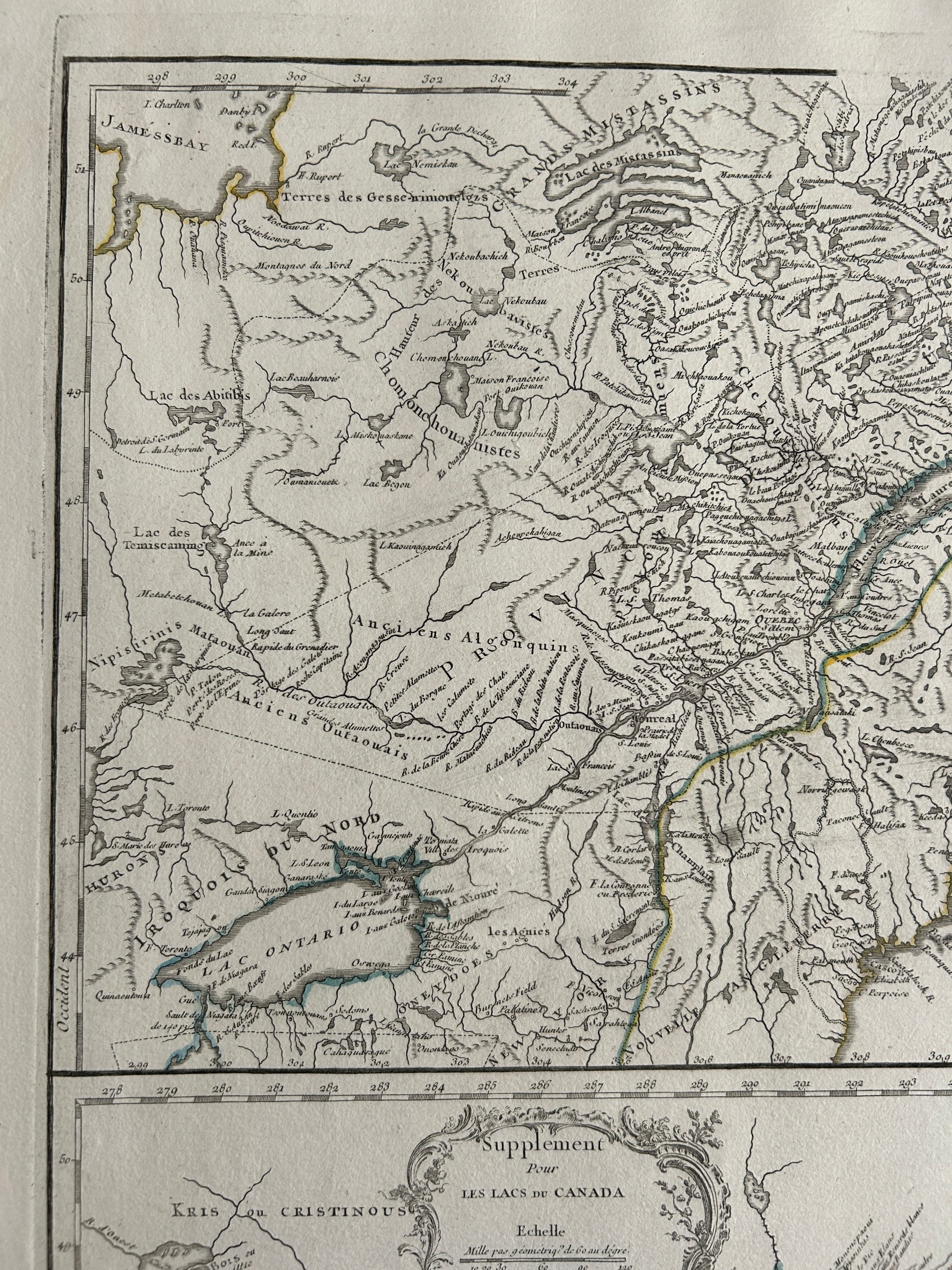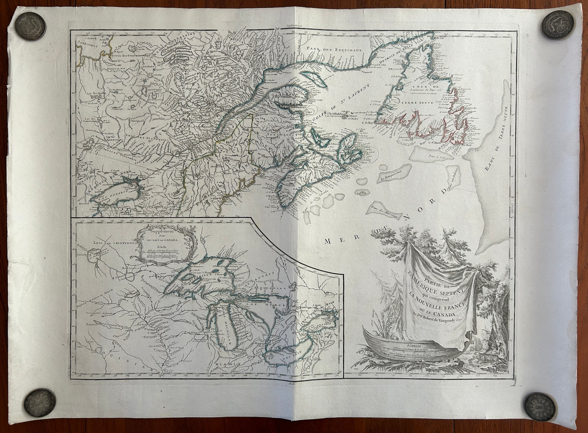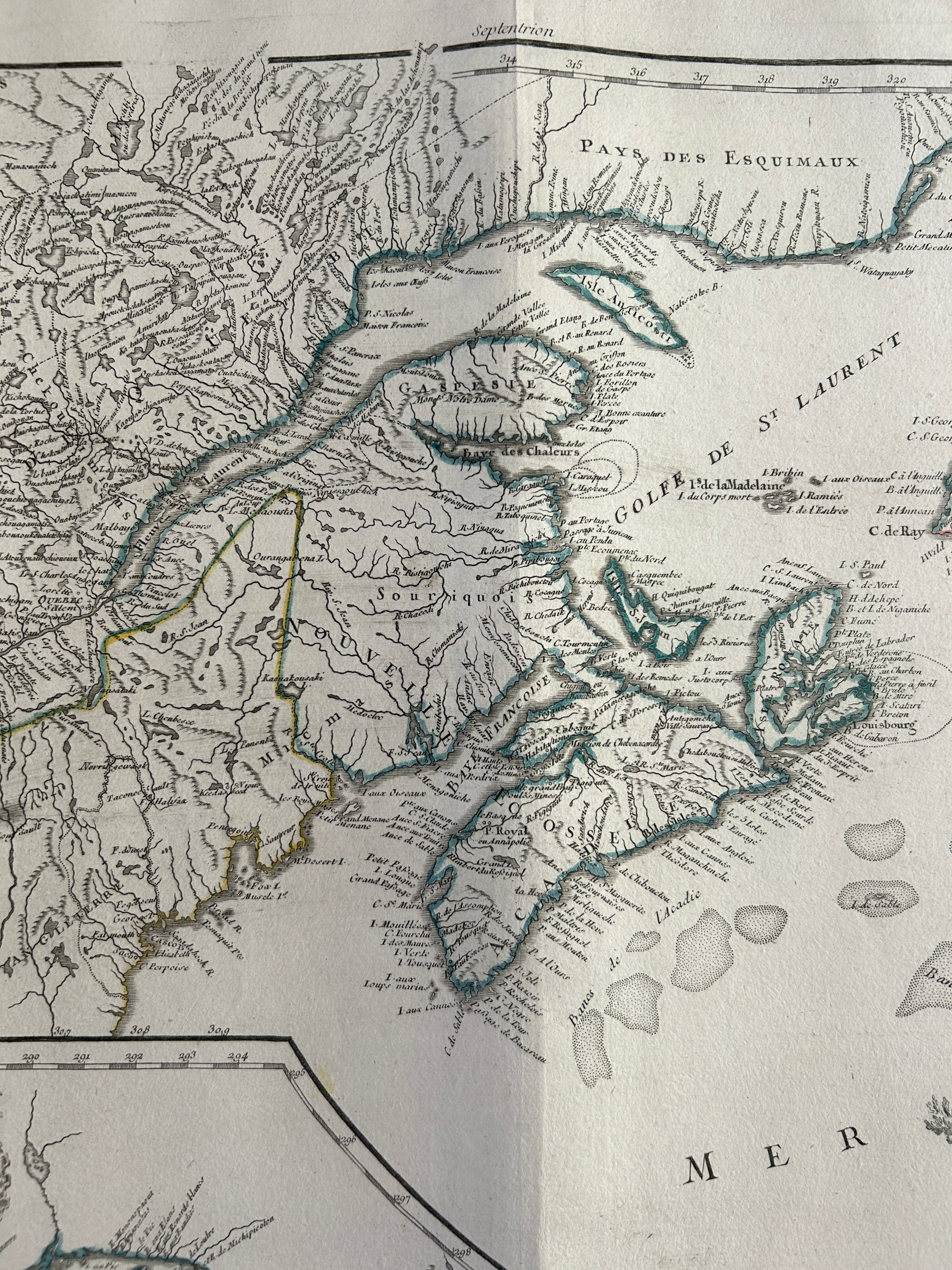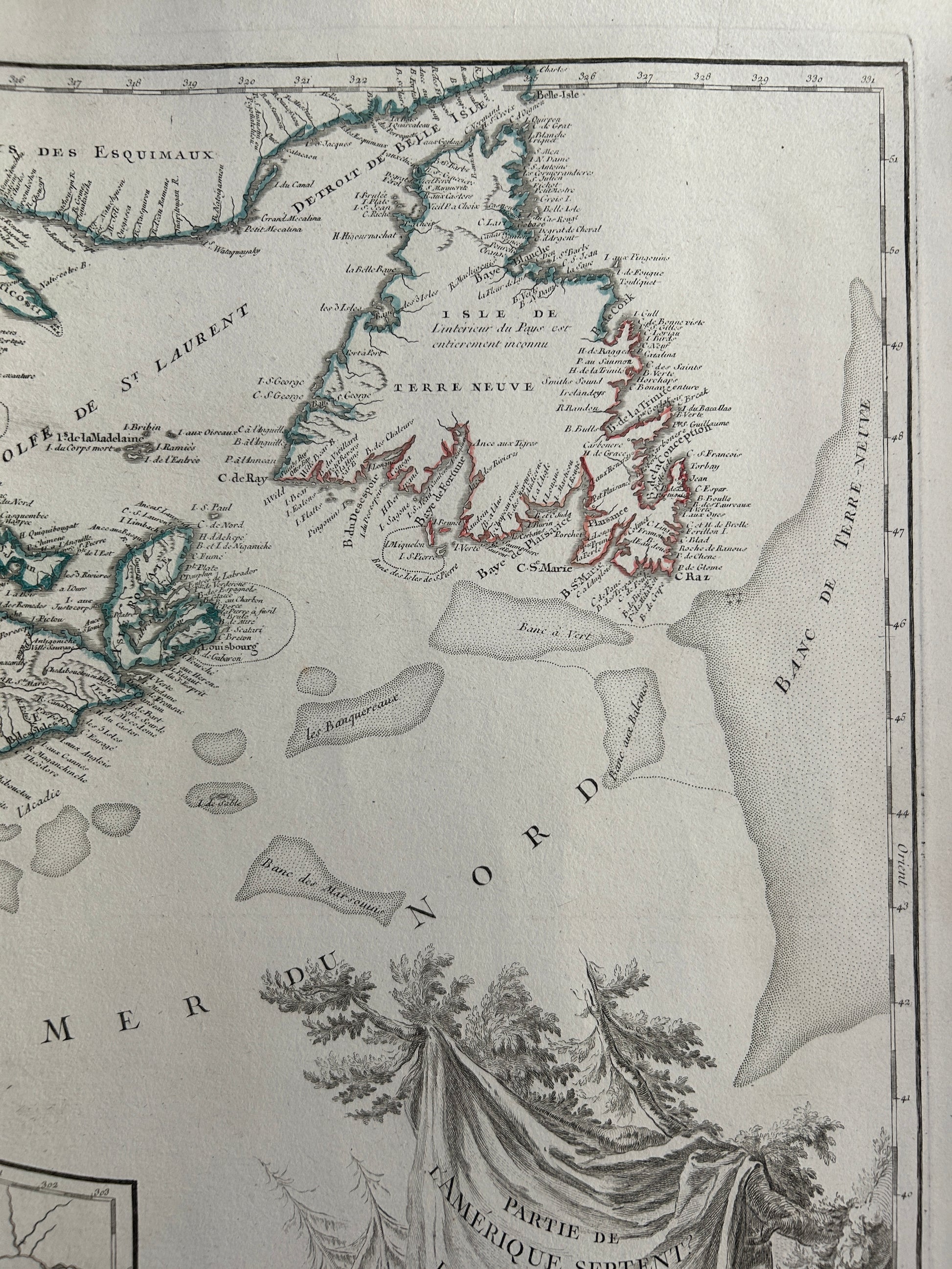 Discover the beauty and history of North America with "Partie de L'Amerique Septent? Qui comprend La Nouvelle France ou le Canada", an exquisite old map created by Vaugondy. Immerse yourself in the rich culture and heritage of this captivating region. Bring a touch of luxury and sophistication to your home or office with this premium piece of art.