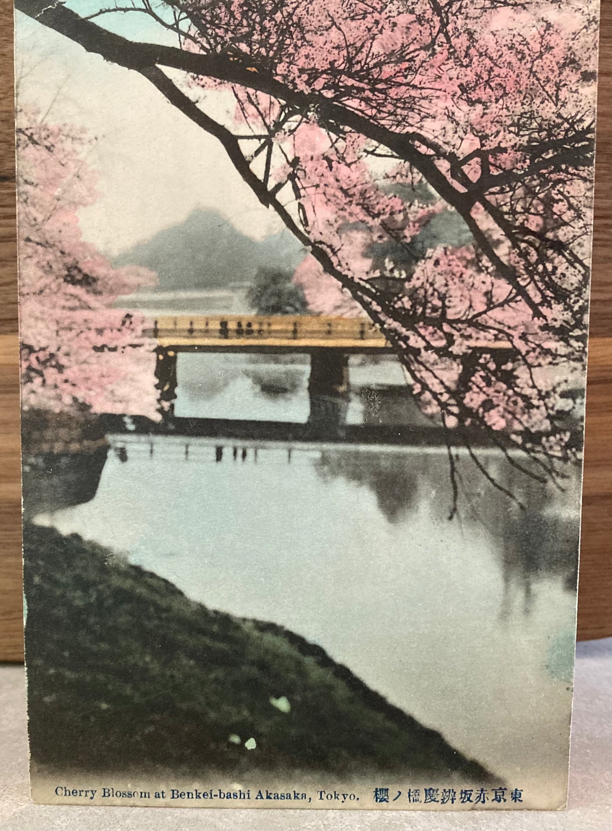 Vintage Japanese Postcard - Cherry Blossom at Benkei-Bashi Akasaka, Tokyo