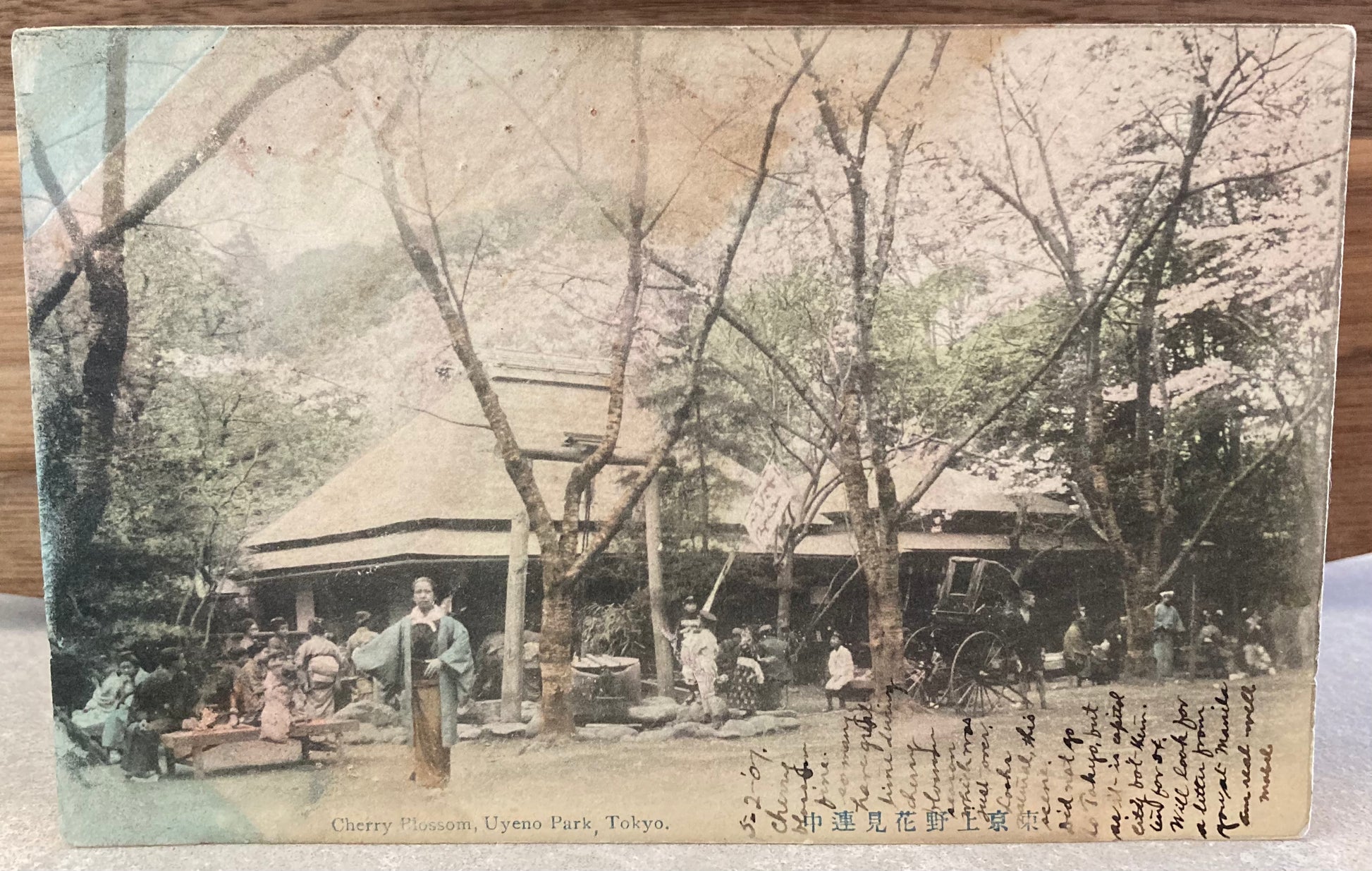 Vintage Japanese Postcard - Cherry Blossom, Uyeno Park, Tokyo