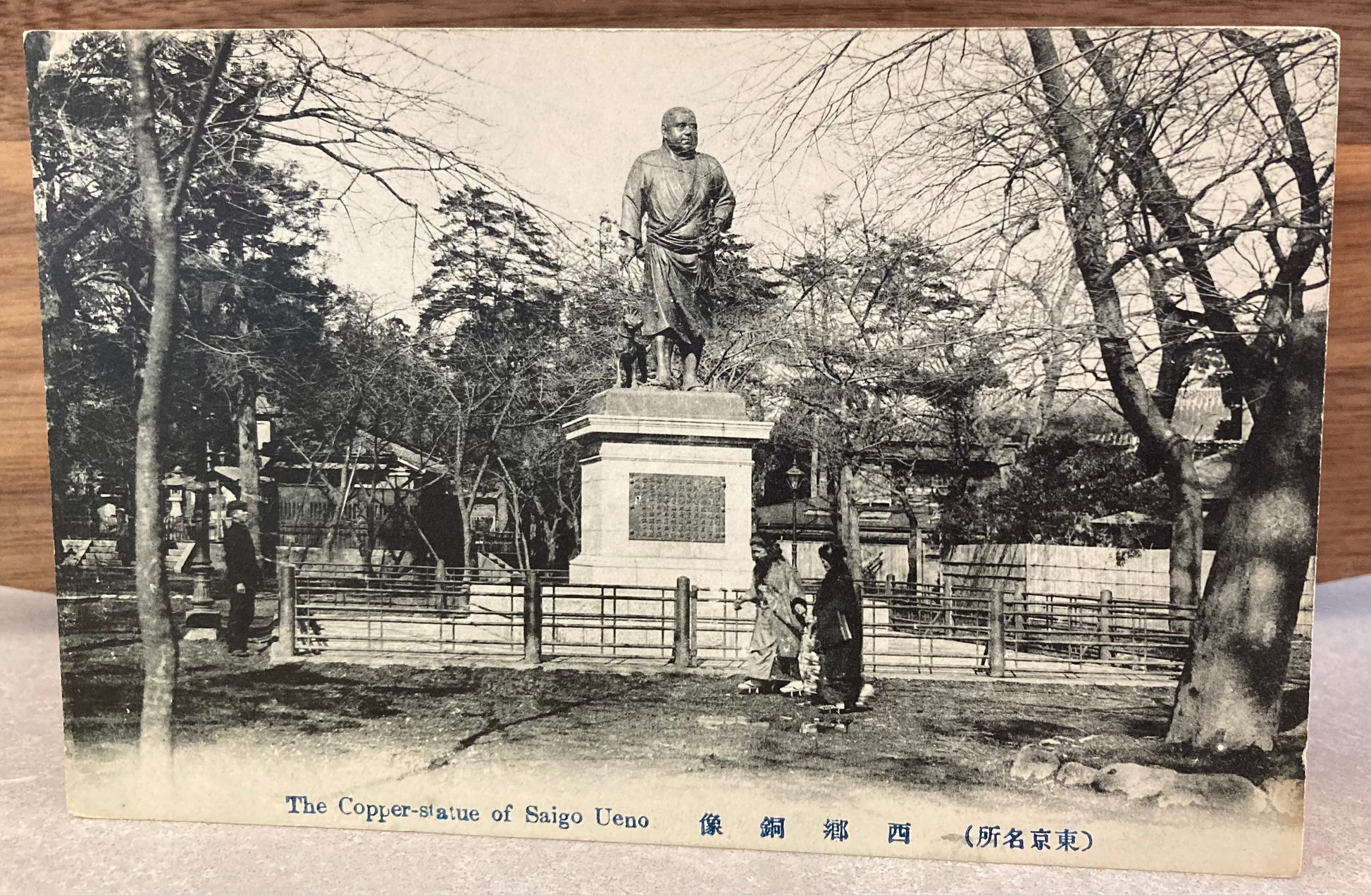 Vintage Japanese Postcard - The Copper-Statue of Saigo Ueno, Tokyo