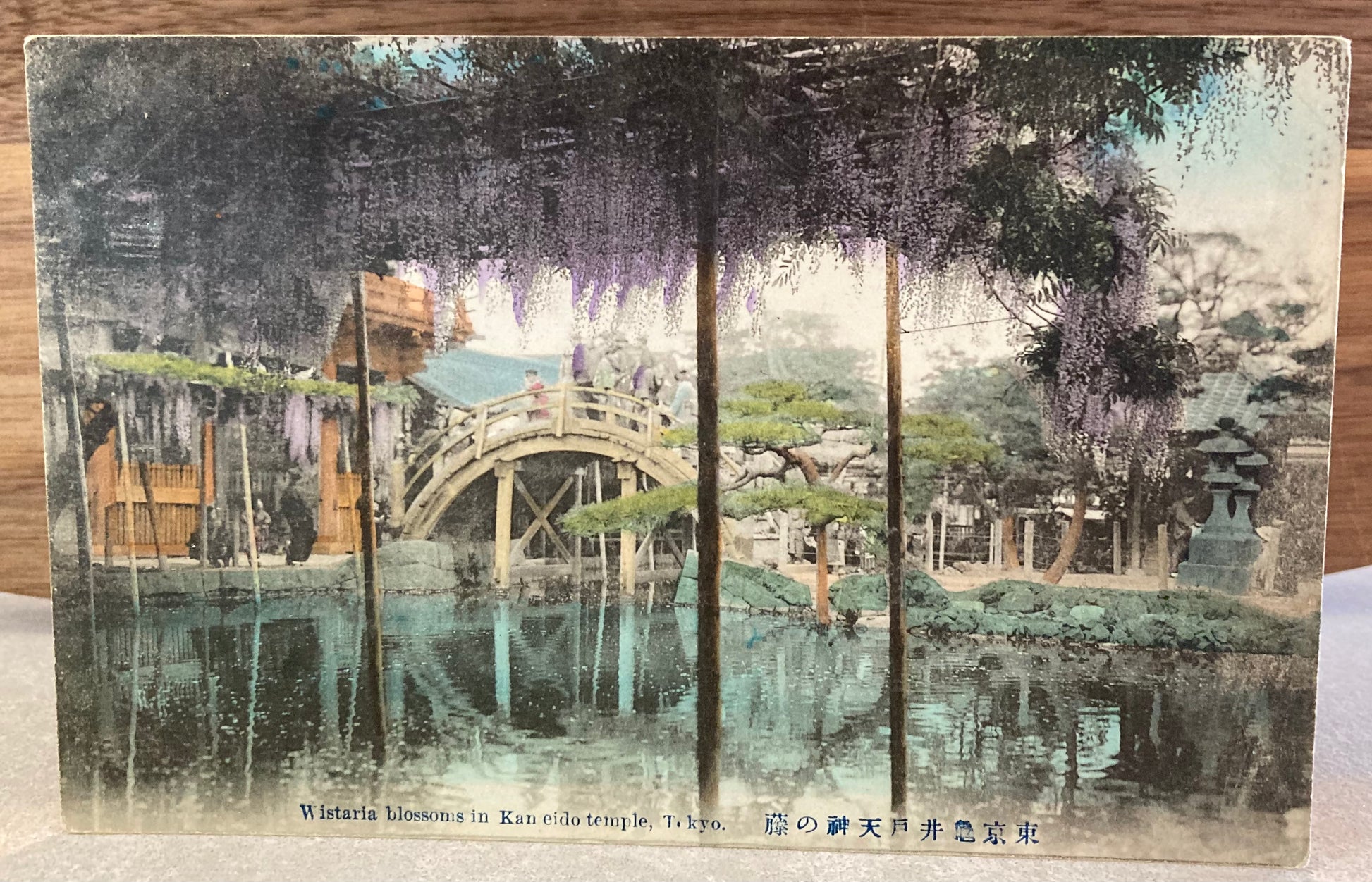 Vintage Japanese Postcard - Wisteria Blossoms in Kameido Temple, Tokyo